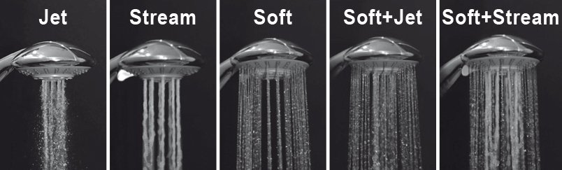 - 5 режимів подачі води: Jet, Stream, Soft, Soft + Jet, Soft + Stream