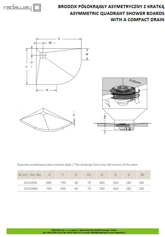 Душова плита Radaway RadаDrain ліва з компактним жолобом 990x790 мм 5EK1008L