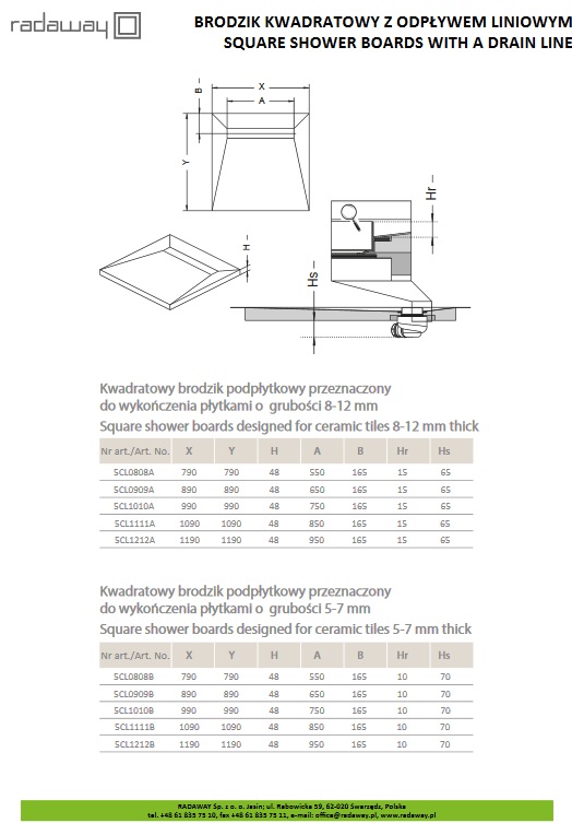 Душова плита Radaway RadаDrain з лінійним жолобом 1090x1090 мм 5CL1111A