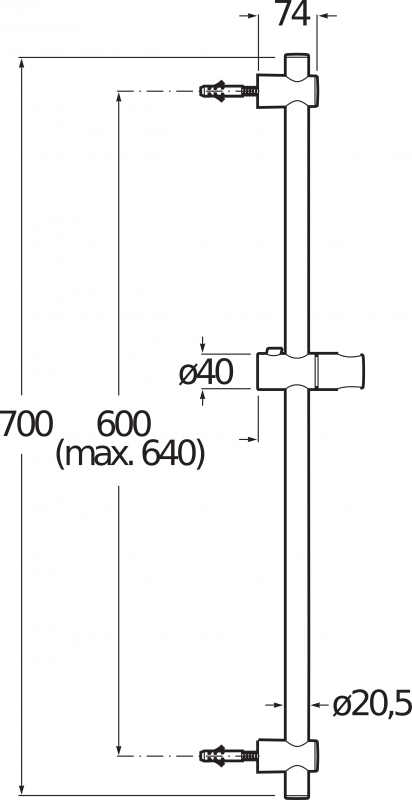 1) Душова штанга Jika Cubito-N 700 мм хром