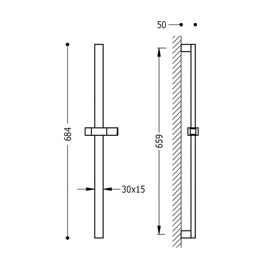 1) Штанга для душа Tres Project 659 мм змінна латунь хром