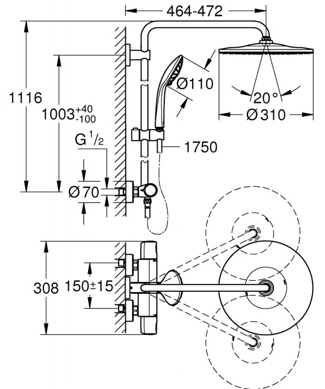 Поспішайте купити Душова система Grohe Euphoria System 310 з термостатом хром 26384002 за акційною ціною.