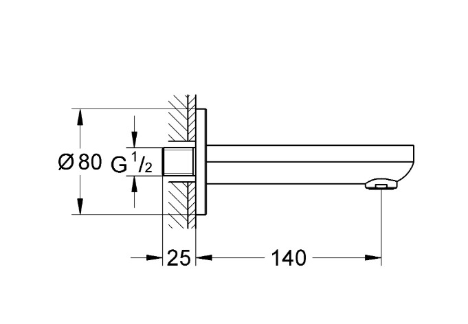 - металева накладна панель з GROHE QuickFix (прихованіексцентрики, ущільнення, прихований монтаж), регульована на 6 °
