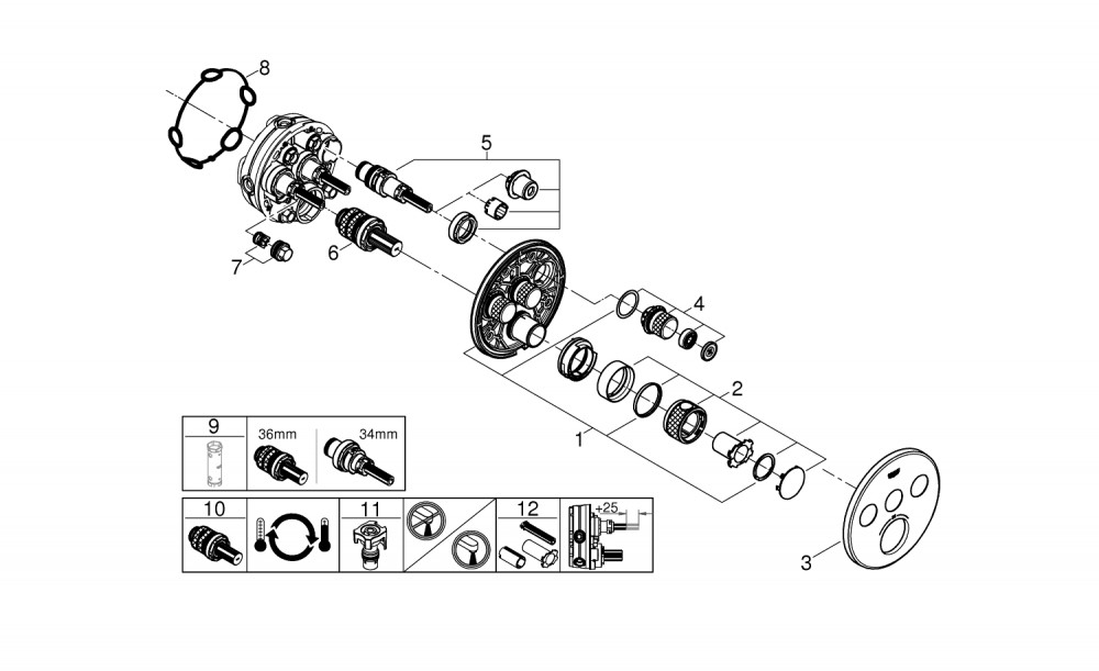 - комплект верхньої монтажної частини для GROHE Rapido SmartBox 35600000 (універсальної вбудовуваної частини)