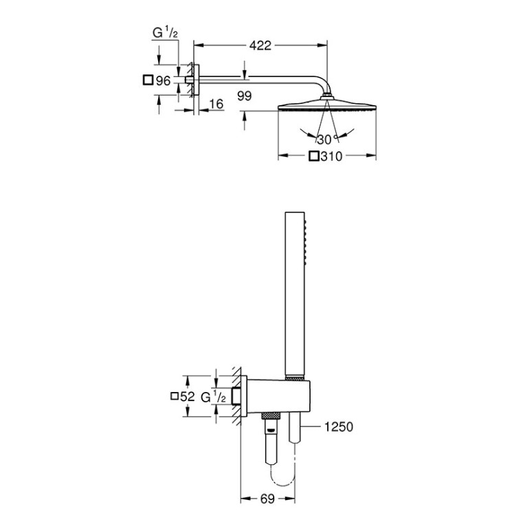 Верхній душ з душовим кронштейном Rainshower Mono 310 Cube 422 мм, 1 режим струменя (26563000)