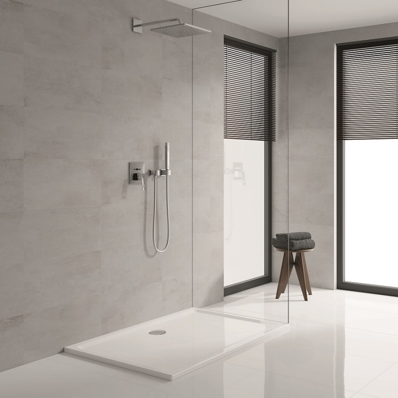 Накладка має тонкий профіль(настінна пластина 10 мм із загальним виступом 43 мм), а перемикач дозволяє без зусиль перенаправляти потік із душової лійки на ручний душ. Завдяки міцному картриджу GROHE SilkMove суцільнометалевий важіль плавно і точно регулює потік та температуру води.