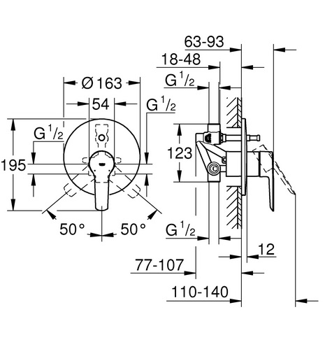 - Настінний змішувач внутрішнього монтажу