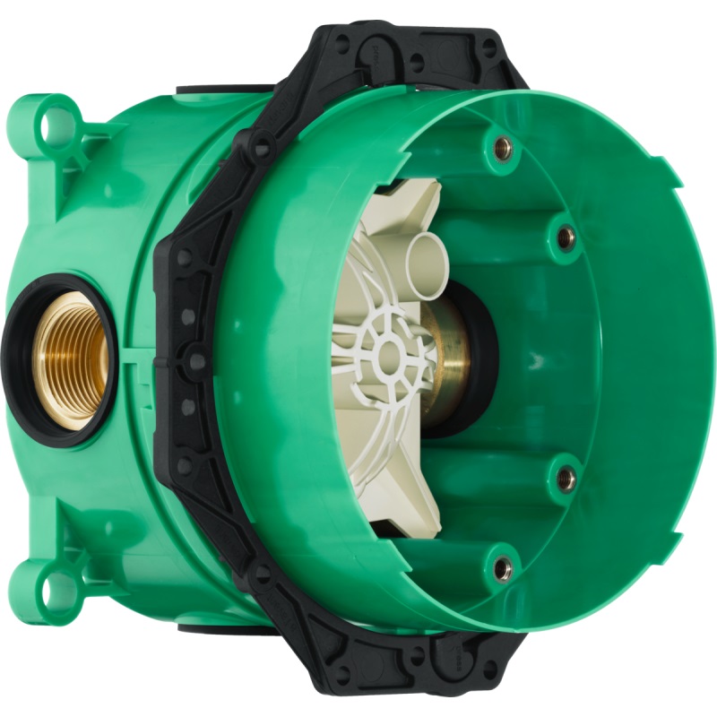 Термостат на два виходи виконаний в квадратній формі і забезпечений налаштованим обмежувачем температури води, який точно передає обрану температуру потоку. Один вентиль служить для регулювання температури потоку, а другий вентиль служить перемикачем між ручним і верхнім душем, а також збільшенням потужності напору води поворотом вентиля. У комплекті поставляється монтажний короб IBox.