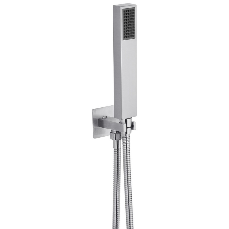 Душовий гарнітур прихованого монтажу Kroner KRP Edelstahl Kubus - ESG082, завдяки своєму стильному дизайну, ідеально впишеться в сучасну ванну кімнату. Душова системавиготовлений з харчової нержавіючої сталі. Ручна лійка на 1 режим доповнюється шлангом 1500 мм. Розмір лійки 19х2,8х2 см. Діаметр тропічного душу 20х20 см. Потік регулюється за допомогою настінного важеля. Робочий механізм - міцний керамічний картридж 35 мм. У комплект поставки також входить внутрішня частина змішувача.