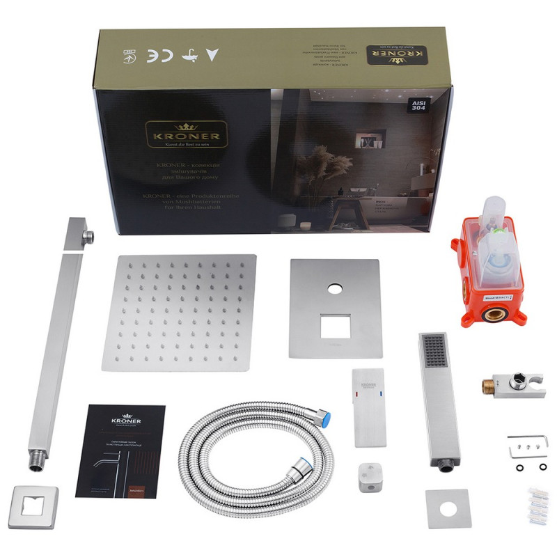Душова система прихованого монтажу Kroner KRP Edelstahl Kubus-ESG082 із змішувачем нержавіюча сталь CV029971