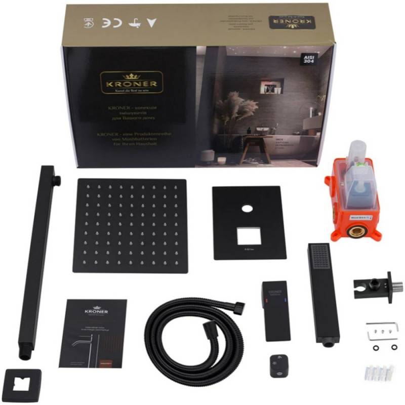 Душова система прихованого монтажу Kroner KRP Edelstahl Kubus-SCH082 із змішувачем нержавіюча сталь чорний CV029972