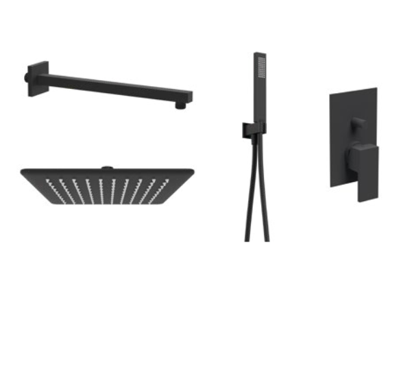 Душова система прихованого монтажу Ponsi Italia R з верхнім і ручним душем чорний матовий