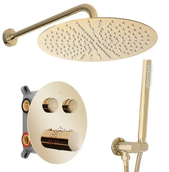 Душова система прихованого монтажу Rea Lungo з термостатом золото REA-P8550