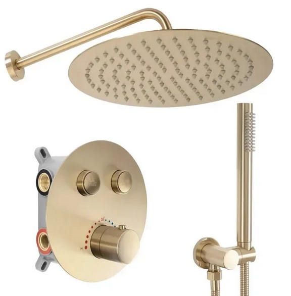 Душова система прихованого монтажу Rea Lungo з термостатом матове золото REA-P8551