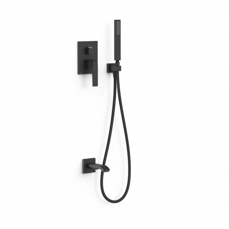 Душева система прихованого монтажу Tres Slim Exclusive із виливом та одноважільний змішувач чорний матовий