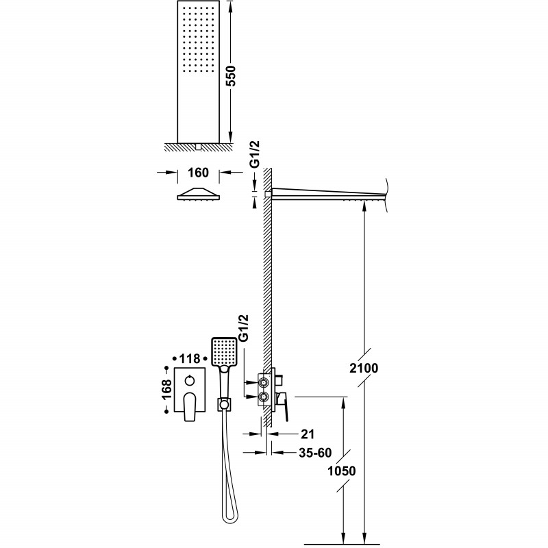 Project-Tres Душова система з одноважільним вбудованим змішувачем Rapid-Box
