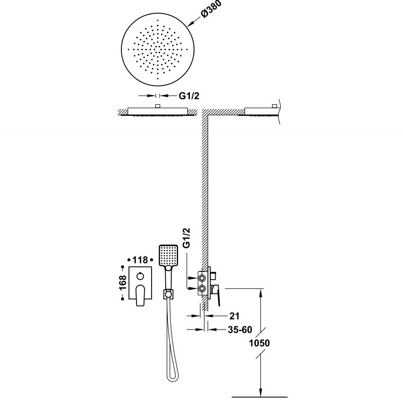 - Знімний душ з антивапняним покриттям 96x110 мм (3 типи струменя)