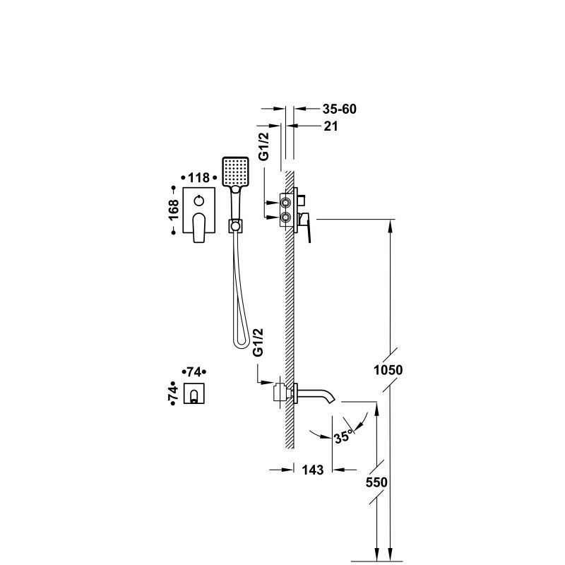 Project-Tres Душова система з одноважільним вбудованим змішувачем Rapid-Box