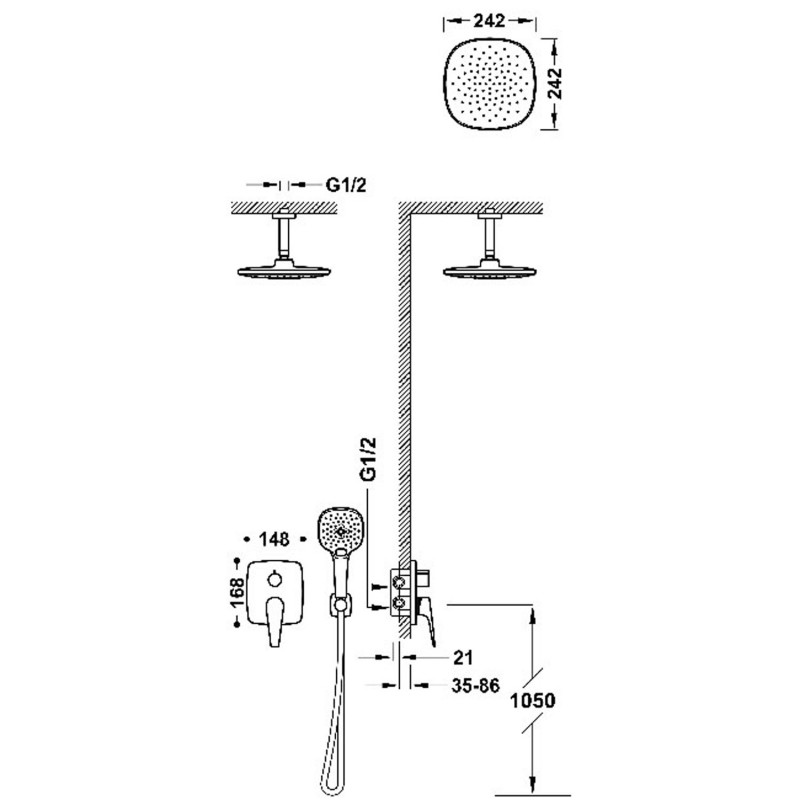 - Стельовий кронштейнз регульованоюнасадкою для душу: 242x242 мм