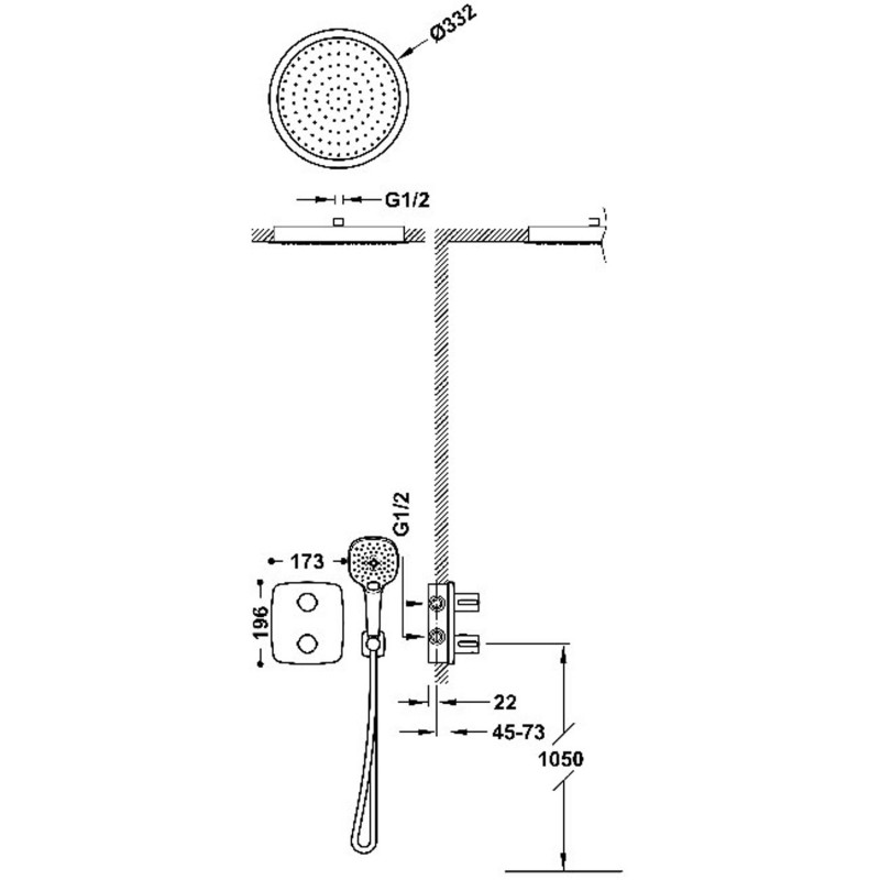 - Прихована стельова душова лійка з нержавіючої сталі: Ø 332 мм