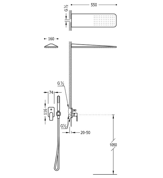 - Душова система з одноважільним вбудованим змішувачем