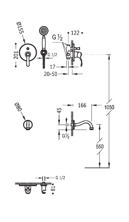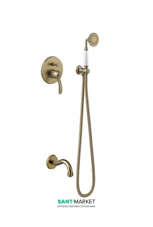 Душова система прихованого монтажу Tres Tres-Сlasic з одноважільним змішувачем і зливом для ванни состаренная латунь матова