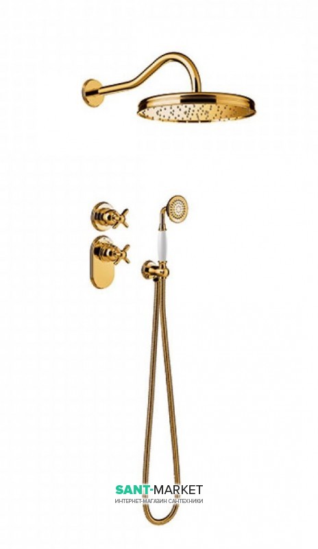 Душова система прихованого монтажу Tres Tres-Clasic з термостатом верхнім і ручним душем золото 24235202OR