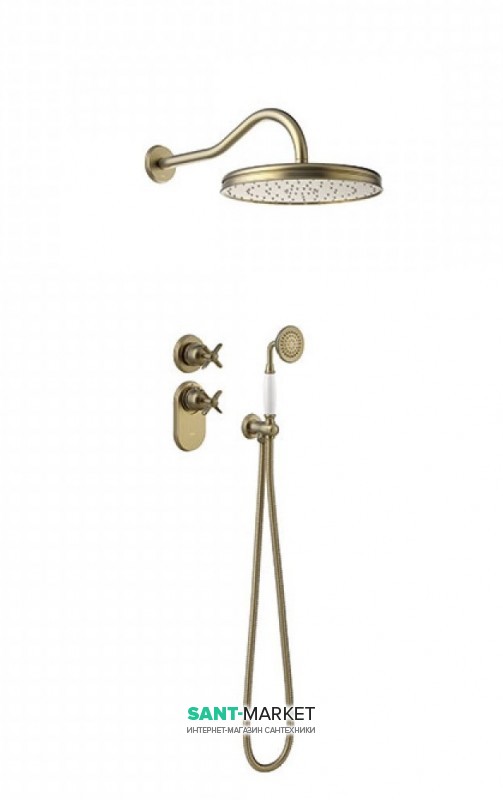 Душова система прихованого монтажу Tres Tres-Сlasic з термостатом верхнім і ручним душем состаренная латунь матова