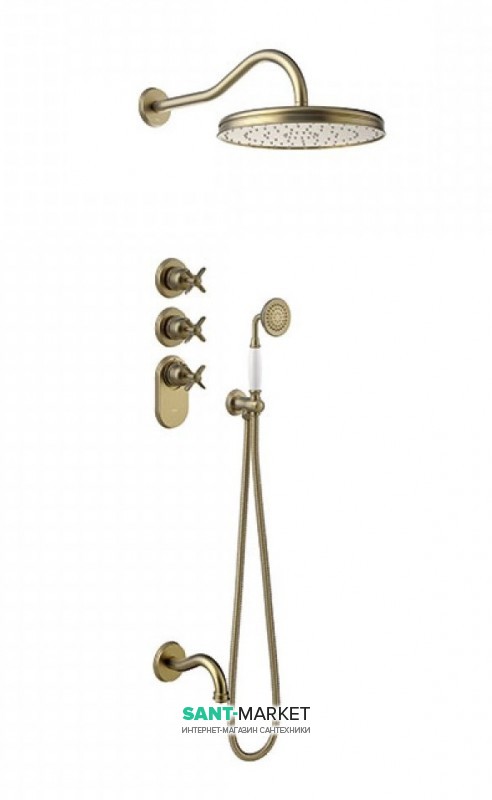 Душова система прихованого монтажу Tres Tres-Сlasic з термостатом верхнім і ручним душем состаренная латунь матова