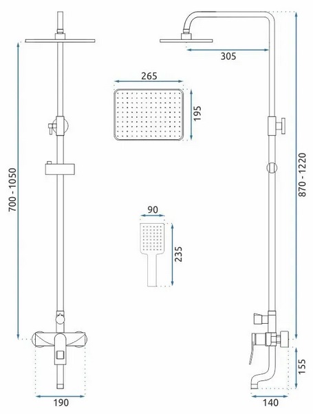- Дивитися інші: Душові стійки для ванни з виливом Rea