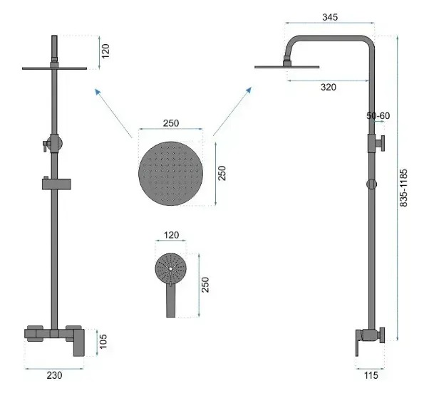 - Дивитися інші: Душові стійки для ванни з виливом Rea