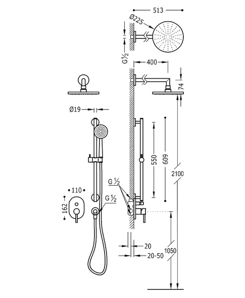 Душова система Tres Alplus з верхнім і ручним душем хром 20318003