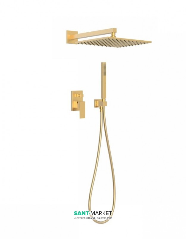 Душова система Tres Cuadro colors з верхнім і ручним душем золото матовий