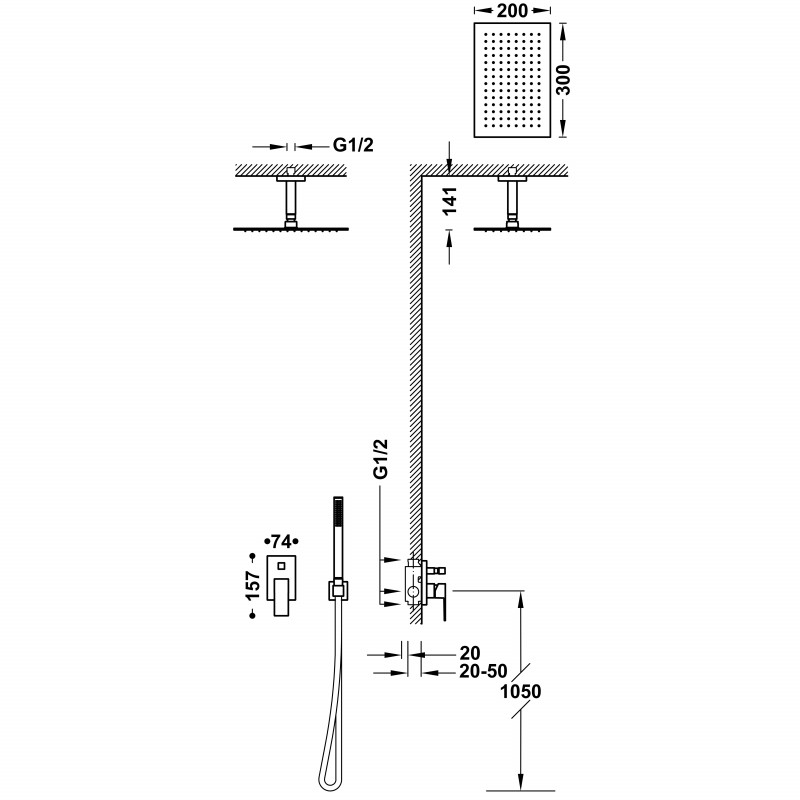 - Знімний душ 300x200 мм із шарніром. Матеріал нержавіюча сталь