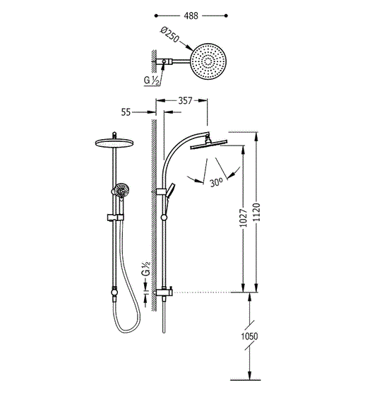 - Верхній душ: незнімний