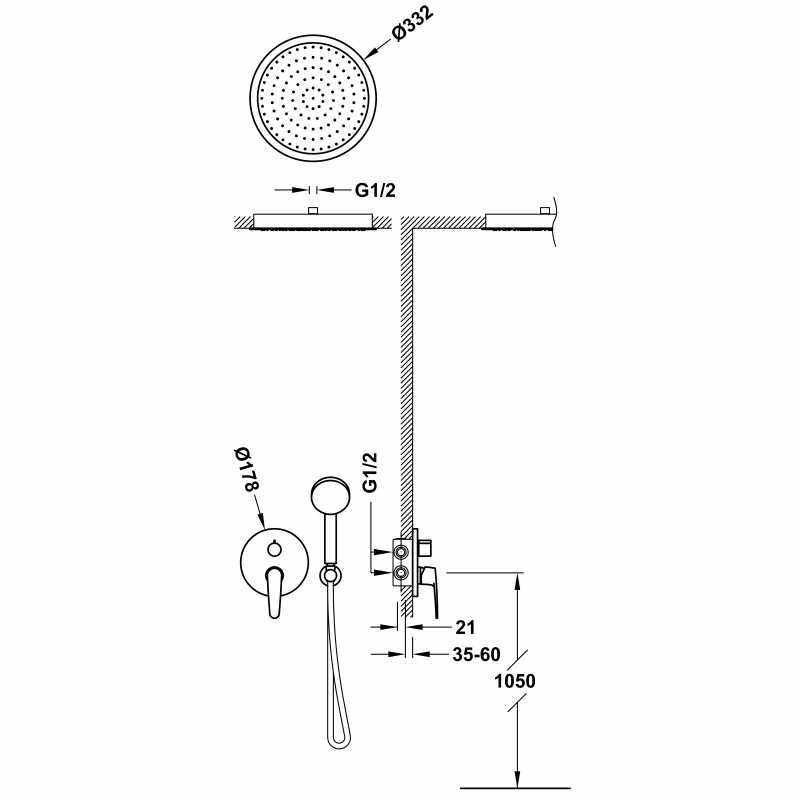 - Знімний душ з антивапняним покриттям Ø 110 мм