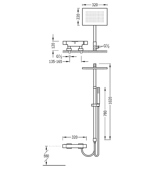Душова система Tres Slim-Tres термостатичні з каскадним виливом хром