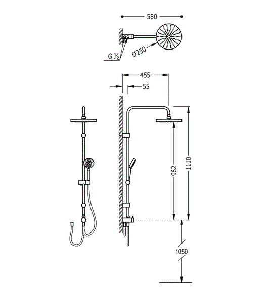 Душова система Tres з верхнім і ручним душем латунь хром 161214