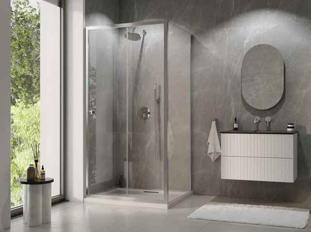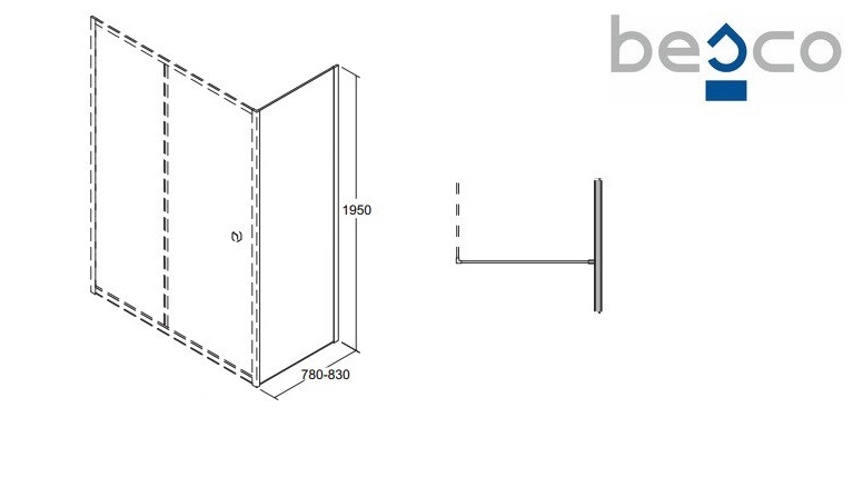 бічний дует Besco Slide 80x195 см глянсового хрому/прозорого скла