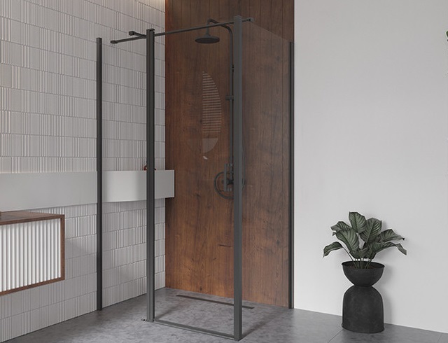 Душова стінка збоку Besco Exo-CH 90х190 см чорний матовий/прозоре скло PCH-9B-190C