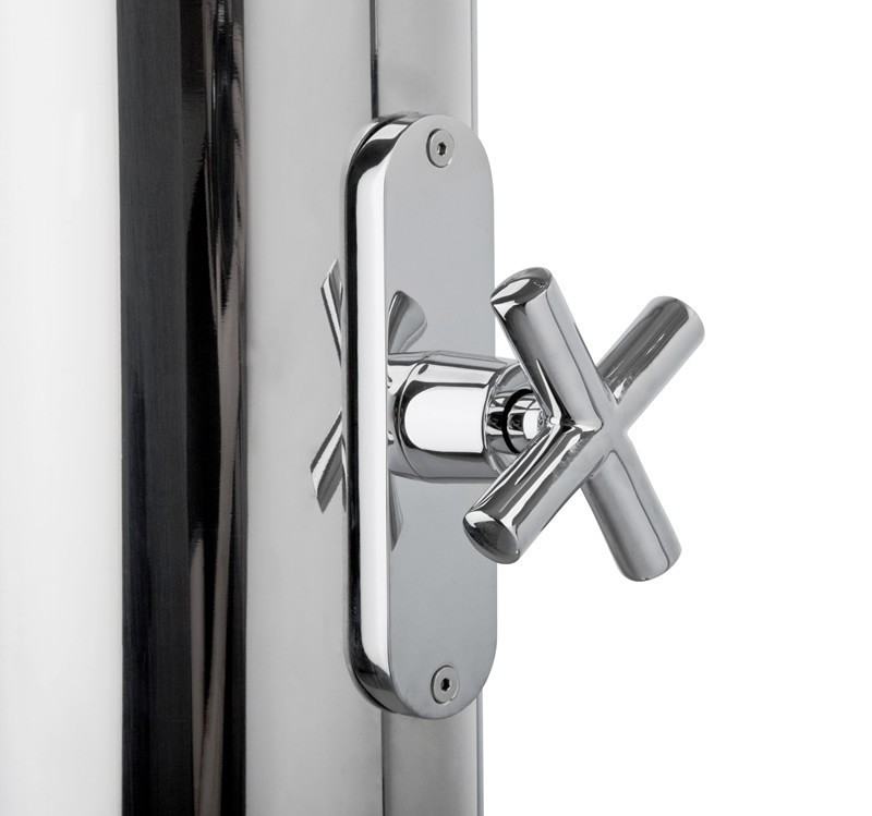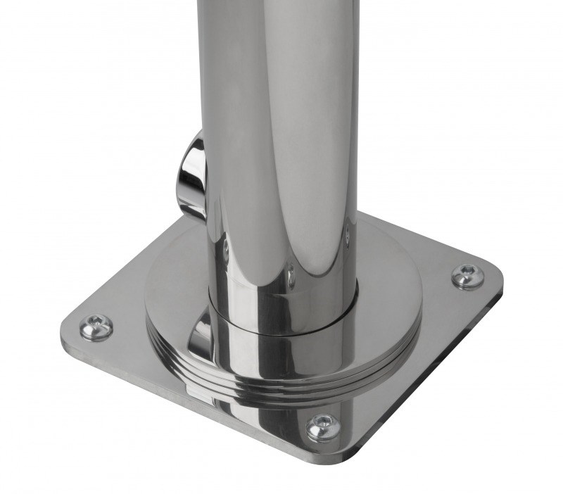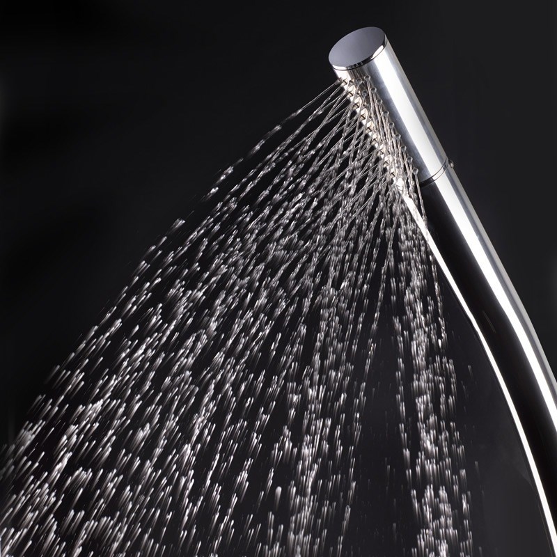 Окремо стоїть душ AMA Hera на відкритому повітрі з регулятором обсягу (тільки для холодної води) з нержавіючої сталі марки AISI 316 L товщиною 2 мм і лійка зі сталі AISI 304.