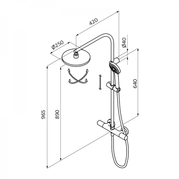 - Форма лійки верхнього душа: кругла (Ø 250 мм, 1 режим)