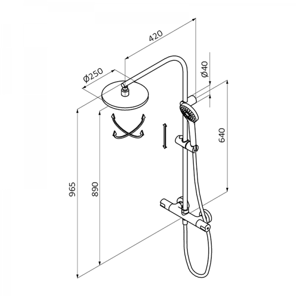 - Форма лійки верхнього душа: кругла (Ø 250 мм, 1 режим)