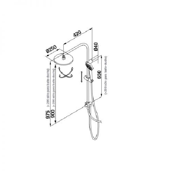 - Форма лійки верхнього душа: кругла (Ø 250 мм, 1 режим)