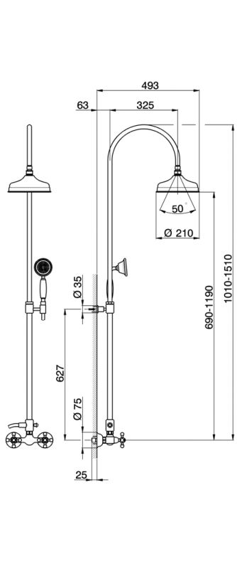Душова стійка для душа Devit Charlestone з двохвентильні змішувачем латунь хром