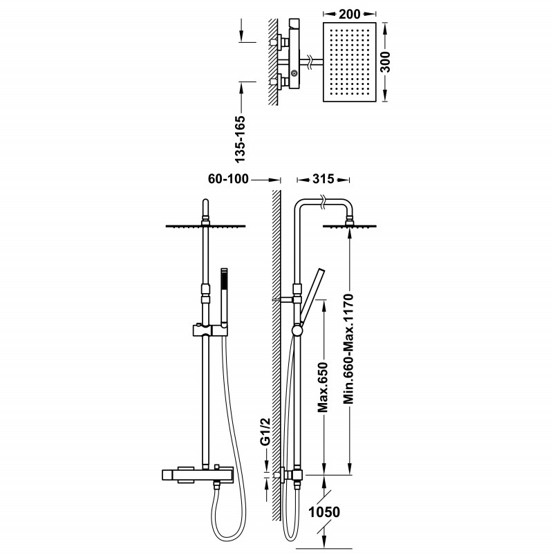 Душева стійка для душу Tres Cuadro-Tres з одноважільний змішувач хром