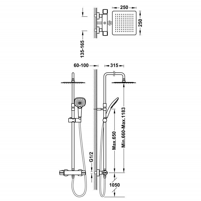 Душева стійка для душу Tres з термостатом та телескопічною штангою хром