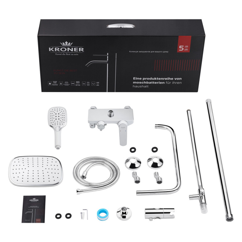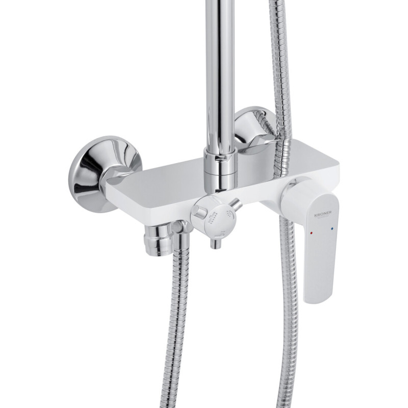Kroner W063 - це стильна і функціональна душова система в поєднанні білого і хромованого, яка додасть сучасного акценту будь-якомуванна кімната.