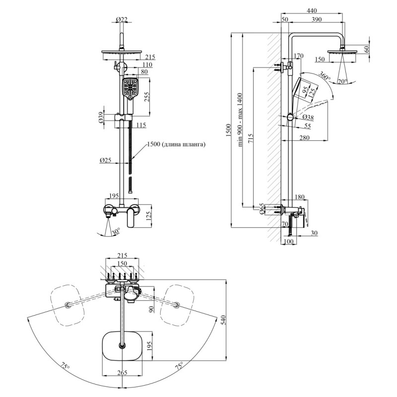 - Дивитися інші: Душові стійки для ванни з виливом Kroner