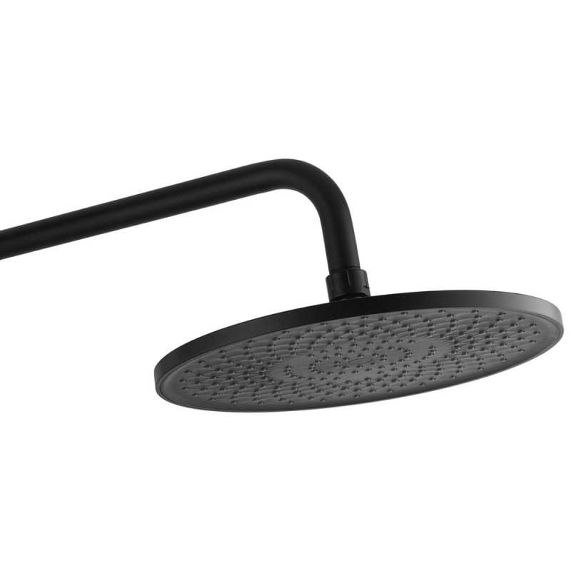 Естетичний вигляд системи неймовірно привабливий завдяки чорному кольору, який надає ванній кімнаті елегантний і сучасний вигляд. Матова поверхня додає нотку розкоші та спокою, підкреслюючи кожну деталь дизайну. Душова система, виготовлена з високоякісної латуні, гарантує тривалий термін служби та надійну роботу.